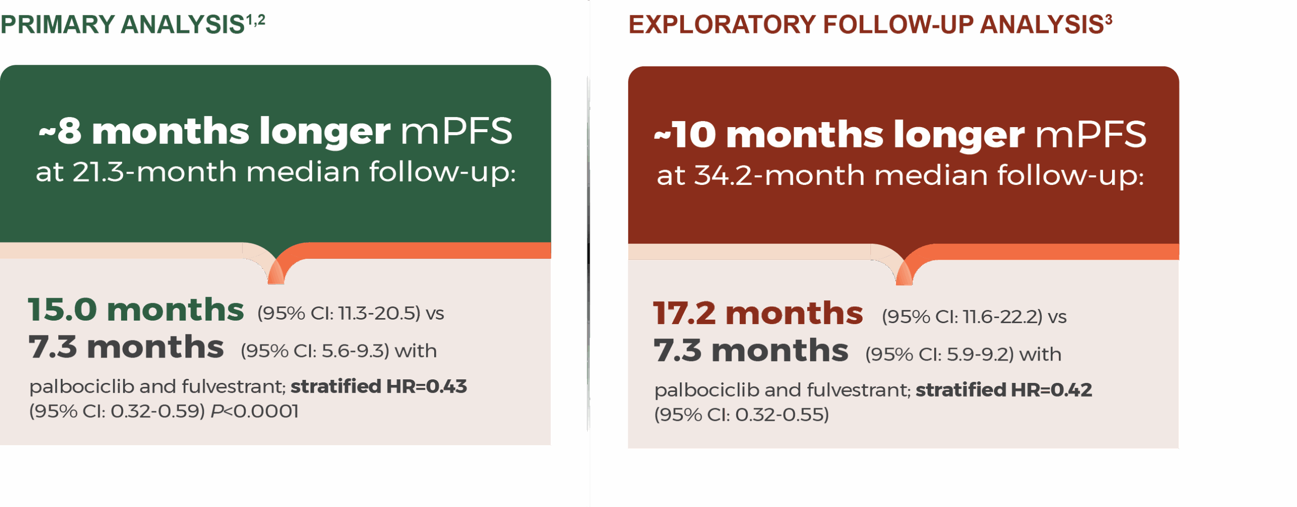 The FIRST and ONLY Regimen with >2x mPFS vs Palbociclib and Fulvestrant1